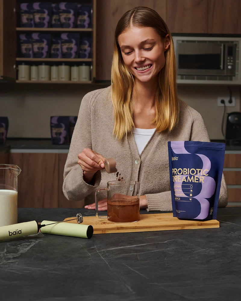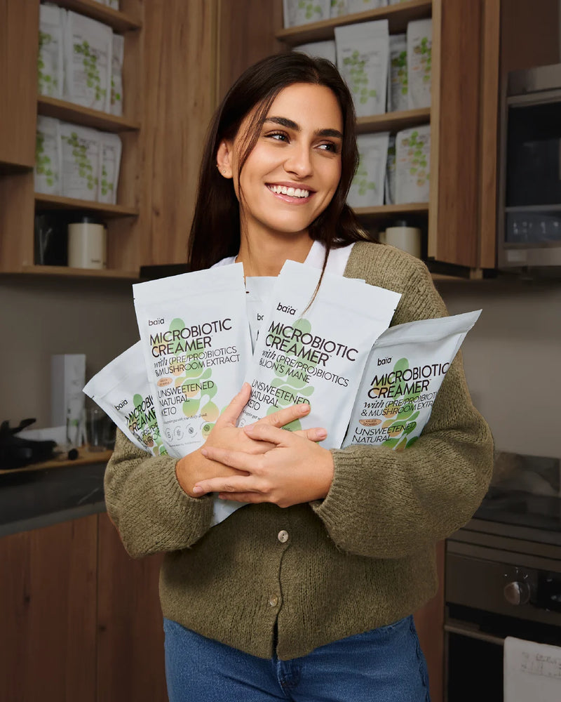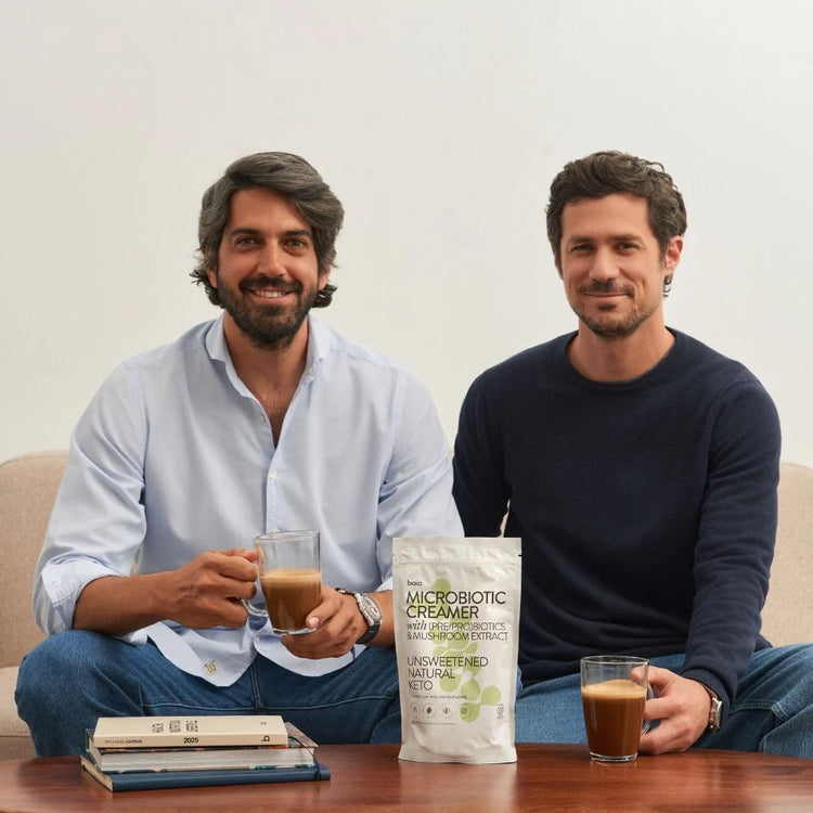 En Baïa, mejoramos tu bienestar a través de la salud intestinal, con fórmulas naturales y respaldo científico. Nuestra historia nace de la experiencia real de Guillermo con trastornos digestivos graves y la pasión y rigor científico de Loan.