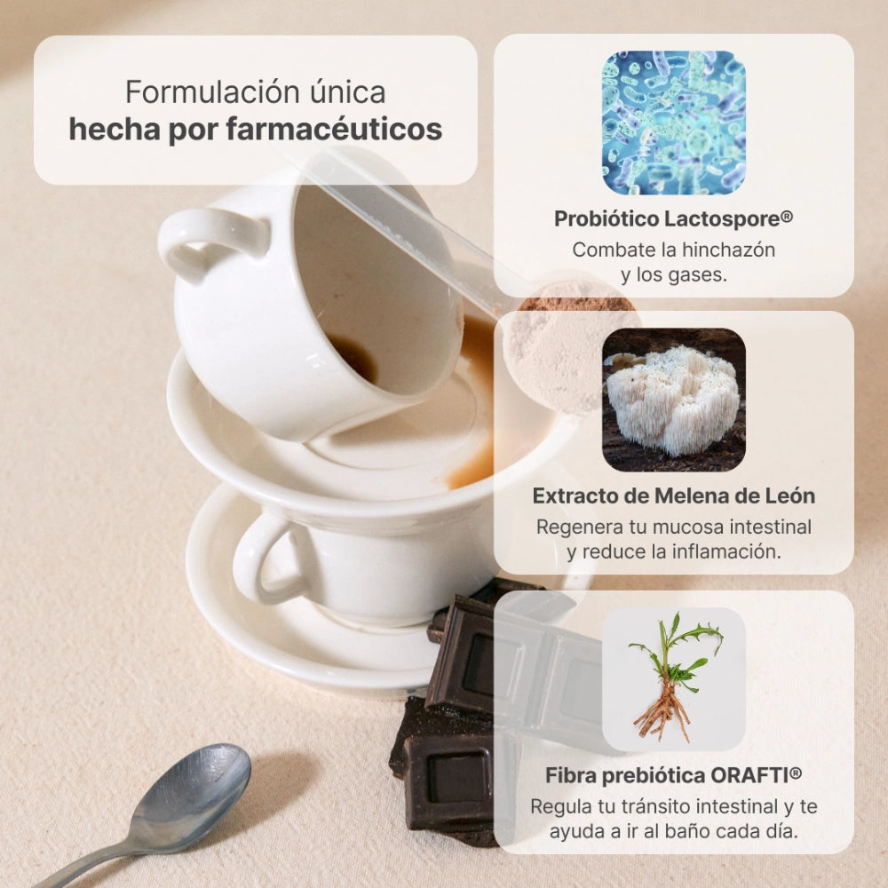 Conjunto de ingredientes que trabajan de forma sinérgica para mejorar la salud intestinal y eliminar los problemas de raíz.