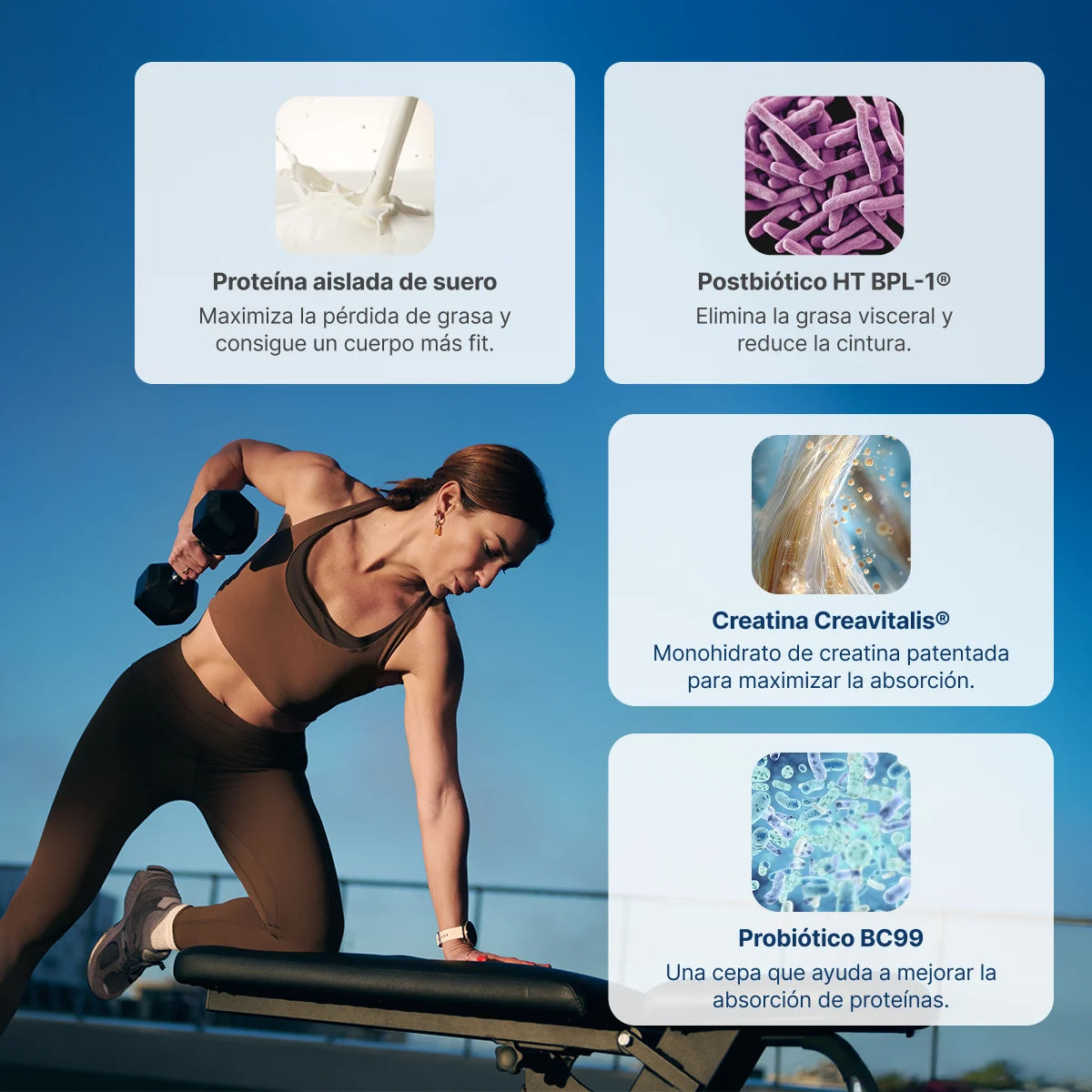 Al ayudarte a comer con más control y a seguir rindiendo en el entrenamiento, esta combinación hace más fácil reducir grasa sin perder fuerza ni masa muscular. Así, el cambio físico se produce de forma progresiva y sostenible, sin sensación de desgaste.