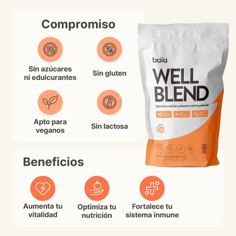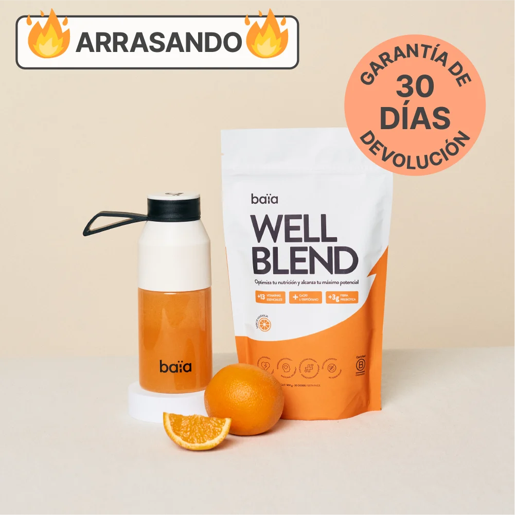 La combinación de fibras y polifenoles derivadas de la fermentación de 40 especies vegetales no solo favorece una mayor diversidad microbiana, sino que también reduce la inflamación intestinal, incrementa las Bifidobacterias y regula el tránsito intestinal. Estos efectos sinérgicos hacen que el Well Blend sea una opción efectiva para promover la salud intestinal y mejorar el bienestar digestivo general. (5,8).